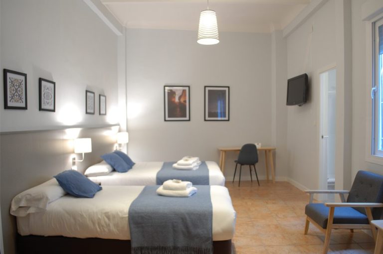 Nuestras habitaciones, de distintos tipos — individuales, dobles, familiares — están diseñadas para ofrecer comodidad tanto a viajeros solos como a familias o grupos. Cuentan con aire acondicionado, calefacción según temporada, baño privado, televisión de pantalla plana, escritorio, y en algunos casos balcón con vistas a la ciudad.